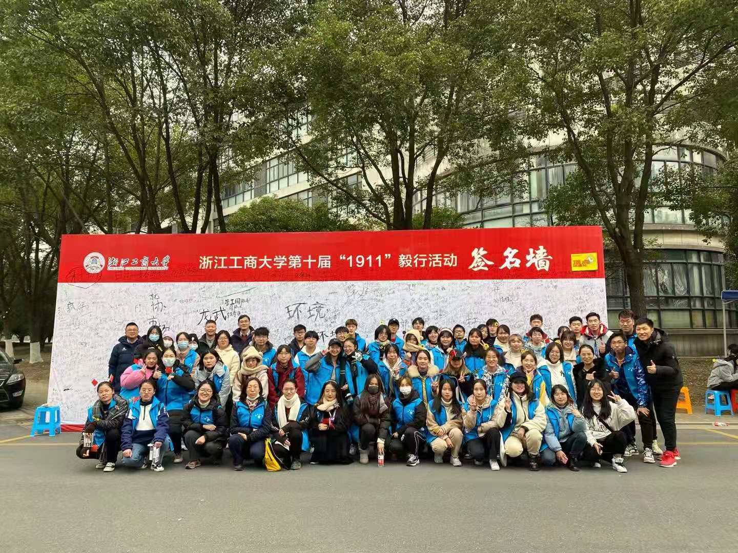 在终点处,每位参与者都在纪念墙上写下了自己的名字并领取了毅行完成纪念奖牌。作为浙小商们打卡清单上的top3,“1911毅行”活动已成为学校体育文化品牌活动。