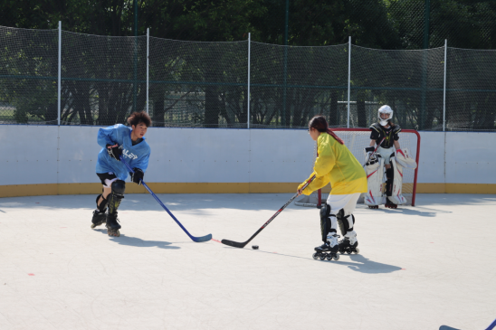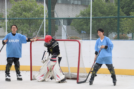 “小时候看过别人玩轮滑,但自己一直没有学过,到了大学发现学校有轮滑课,就马上报了名。”孙艺恺说,脚下技术练得差不多了,教练便开始带着他们体验起轮滑球。“其实我不太擅长运动,篮球、足球都没怎么玩过。接触轮滑球后,发现这项运动特别有意思,对速度和平衡性的要求很高,也需要各种战术配合。”