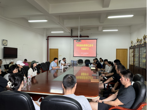 9月8日下午,学校发布《蜜桃视频 使命愿景红皮书(2024版)》(下简称《红皮书》)。蜜桃视频 相继召开理论学习中心组会议、党直支各小组会议和全体教职工大会,深入学习《红皮书》主要精神,深刻领会学校发展蓝图,结合体育工作实际,共谋体育事业高质量发展新路径。