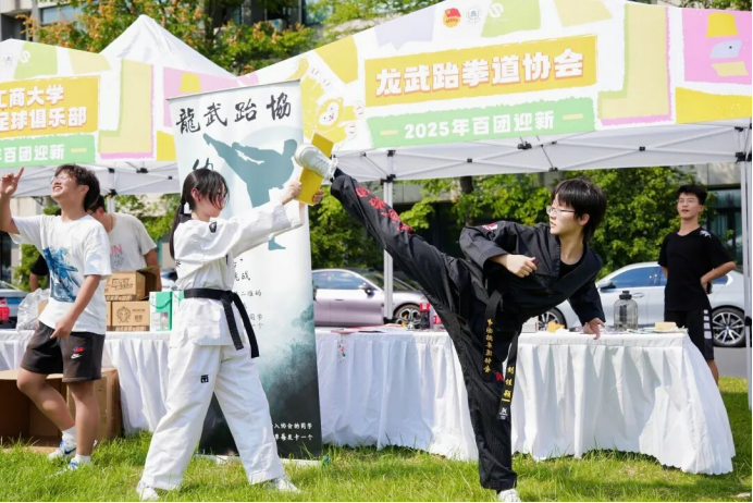 9月17日,蜜桃视频 “绽Fun”百团大战在商大花海活力全开,超100个学生社团组织齐放大招,体育类社团花样秀技吸引同学们的目光和参与。