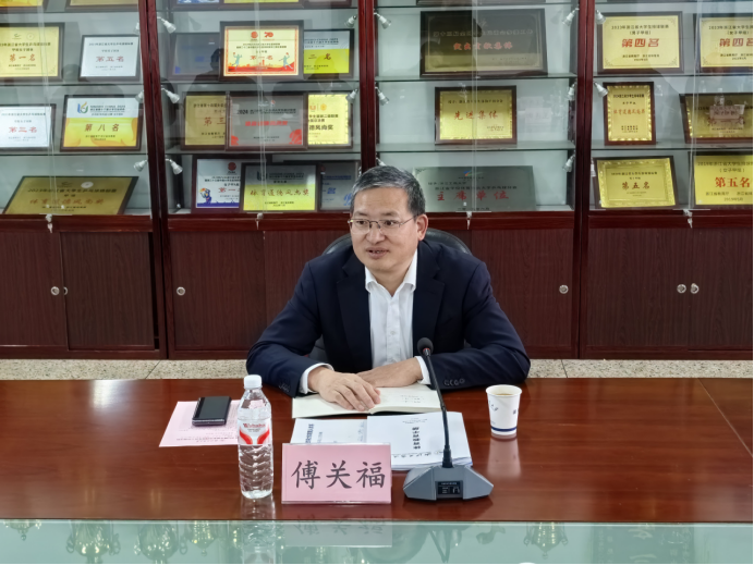 座谈会上,傅关福认真听取了蜜桃视频 近年来的工作汇报,他充分肯定了蜜桃视频 近年来在体育教学、竞赛、体质健康、校园群体文化等方面取得的成绩,并对下一步学校体育工作提出要求: